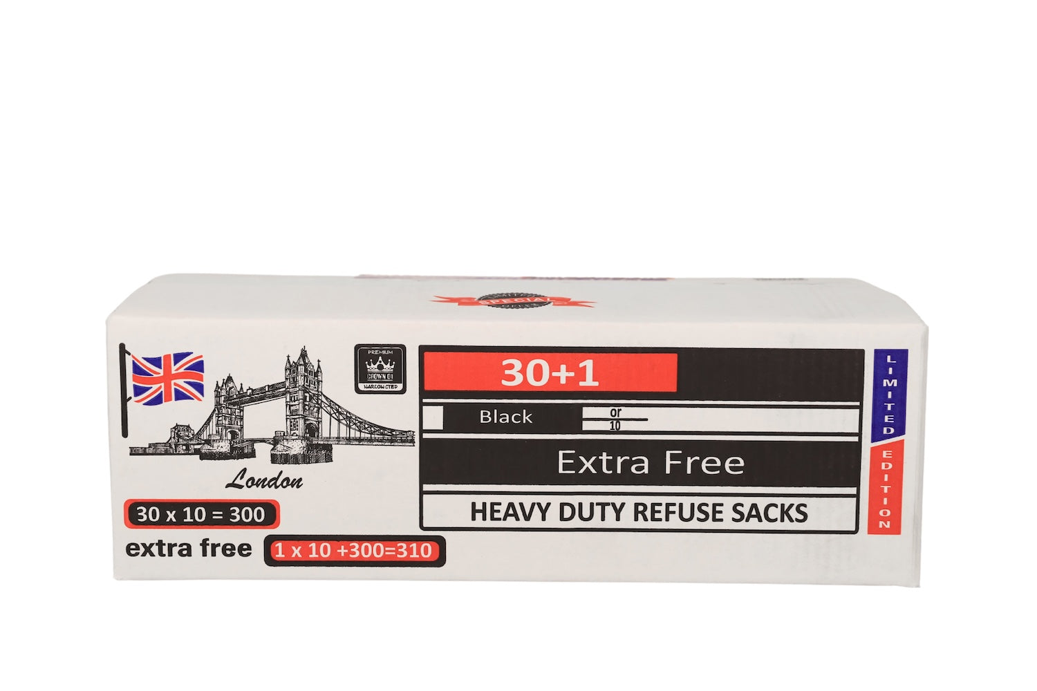This product of ours is perfect for households, offices, and commercial settings needing durable, high-capacity refuse sacks. Each pack contains 10 heavy-duty black bin bags, with 30+1 packs included in every box, offering excellent value and convenience.